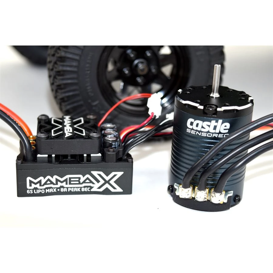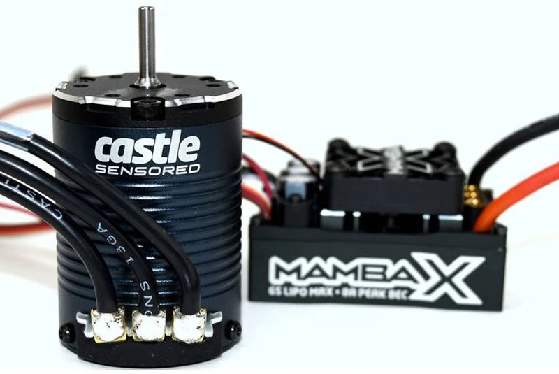 The high performance Mamba X includes an integrated and powerful 8A adjustable BEC and can push the most extreme 1/10th scale setups and 1/8th scale race buggies. SmartSense™ allows you to take advantage of smooth, cog-free, and predictable sensored starts, and Castles new and improved throttle response keeps you ahead of the competition.