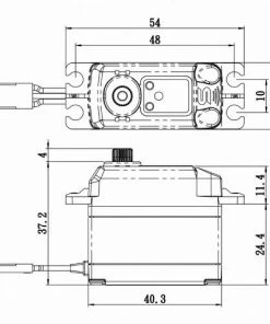 Digital servo with dual ball bearings and sealing o-rings.