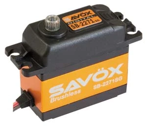 Savöx SB-2271SG is metal geared 20kg Torque servo with aluminium shell and brushless motor. Speed 0.065 sek (7.4V), weight 69g.